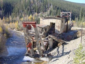 Hier ist die Jack Wade Dredge am Taylor Highway - hier rutschte mein Camper 2000 im Schnee.